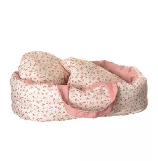 Het dekentje en het kussentje houden de kleine poppen (max 32 cm) lekker warm.