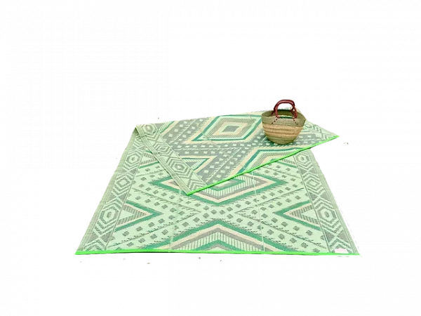 De mat is aan 2 kanten te gebruiken en oprolbaar.